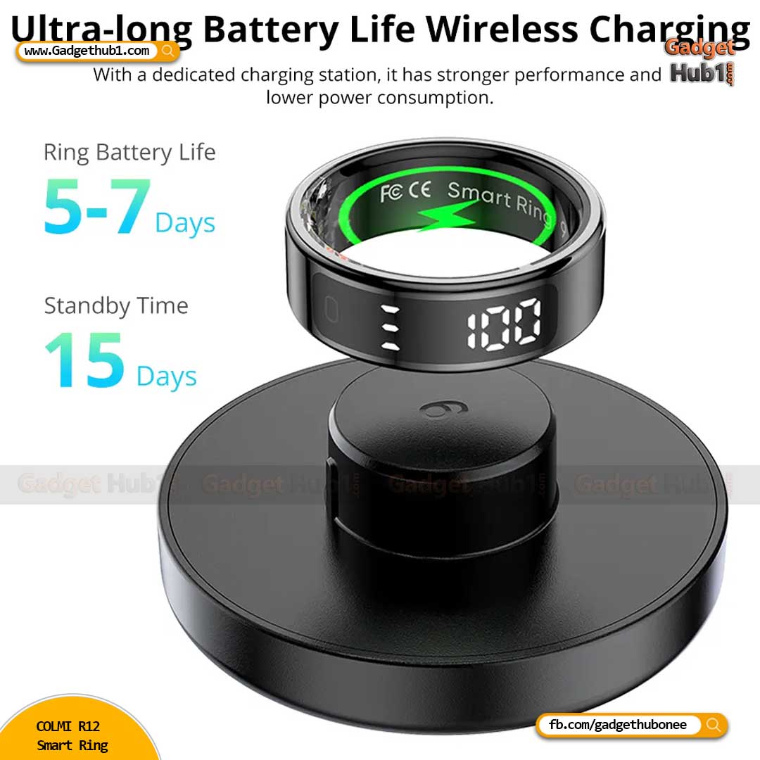 Innovative Technology: COLMI R12 uses the latest display technology, with a screen and touchpad built into the ring. Browse your health statistics with simple gestures, making your smart ring both responsive and stylish.Wireless Charging: Enjoy the convenience of wireless charging with the R12. Simply place it on the charging pad, and it powers up effortlessly.Health Tracking: Stay on top of your health with continuous heart rate, sleep, and activity monitoring. Plus, its water-resistant design ensures durability, making it perfect for everyday wear, rain or shine.Embrace innovation and elevate your wellness journey with the COLMI R12 Smart Ring.