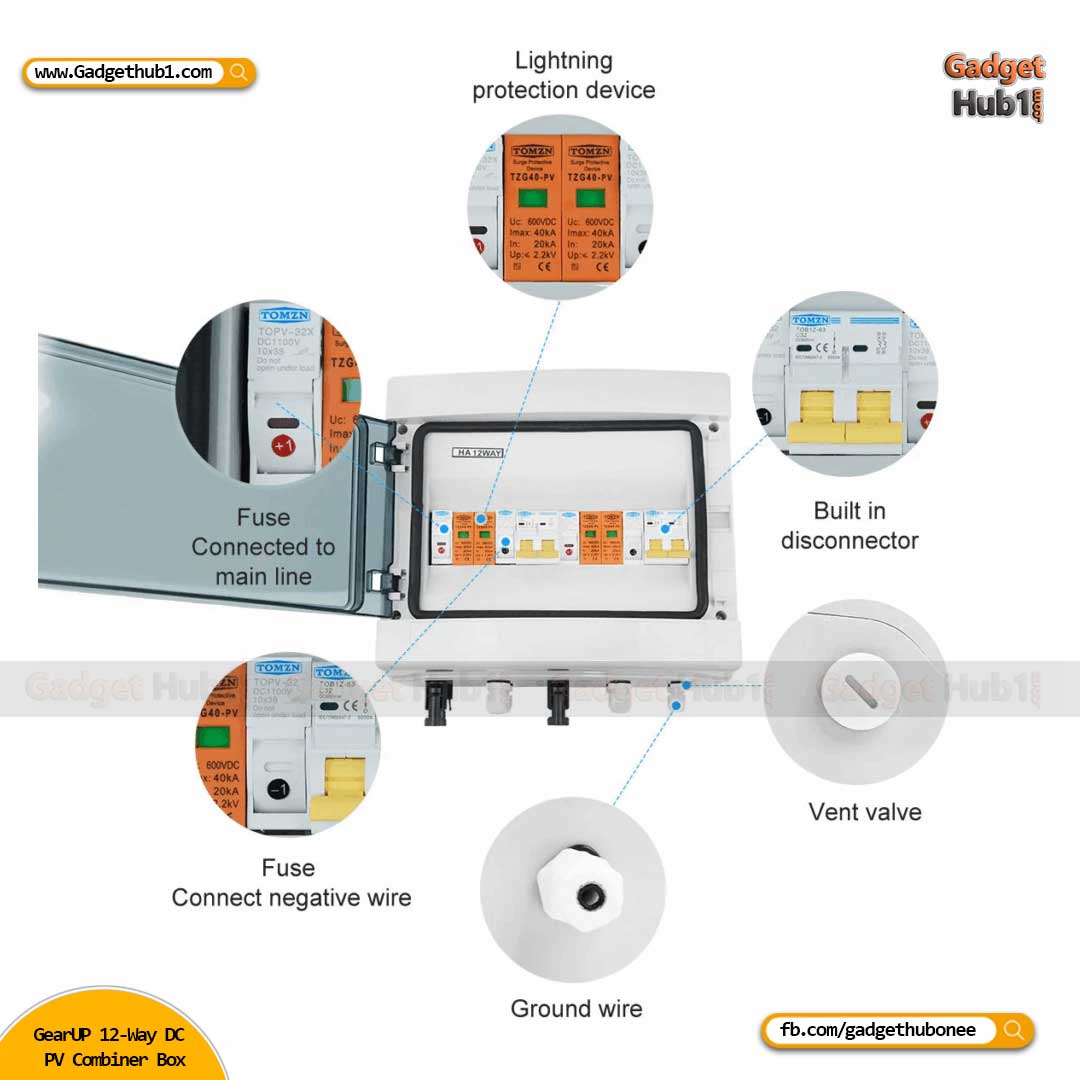 The GearUP 12-Way DC PV Combiner Box with MCB, Fuse & SPD (IP65 Waterproof)Â is now available in Bangladesh. Get the original products at the most affordable price only at GADGETHUB1.COM and enjoy the quality with the promise of the best customer service in Bangladesh.