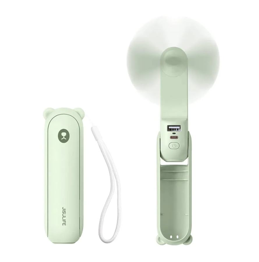 The JISULIFE F8X Mini Portable Fan & Power Bank is a compact, multifunctional gadget designed for convenience and versatility. This 2-in-1 device features a powerful yet quiet handheld fan with multiple speed settings to keep you cool during travel, outdoor activities, or daily commutes. It also doubles as a 4800mAh power bank, capable of charging smartphones or small electronic devices on the go. The fan’s foldable design allows for easy storage in bags or pockets, and its lightweight build ensures portability. With a sleek design and long-lasting performance, the F8X is ideal for those seeking a practical cooling and charging solution.