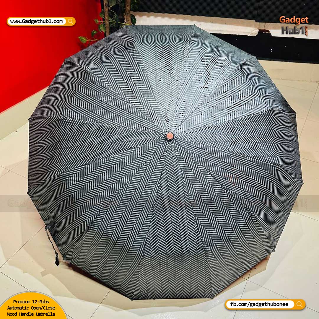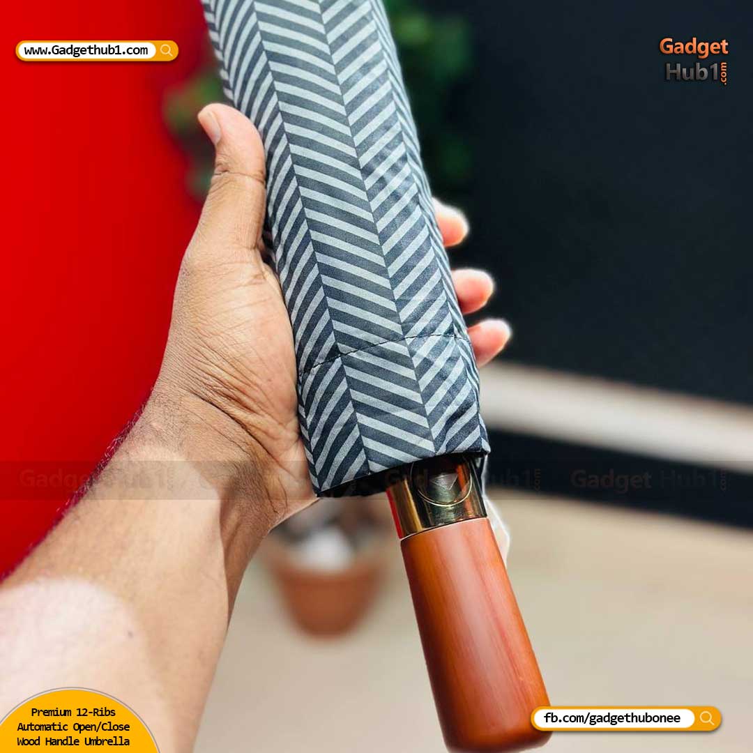 Premium 12-Ribs Automatic Open/Close Wood Handle Umbrella AT THE BEST PRICE IN BANGLADESH FROM GADGET HUB ONE