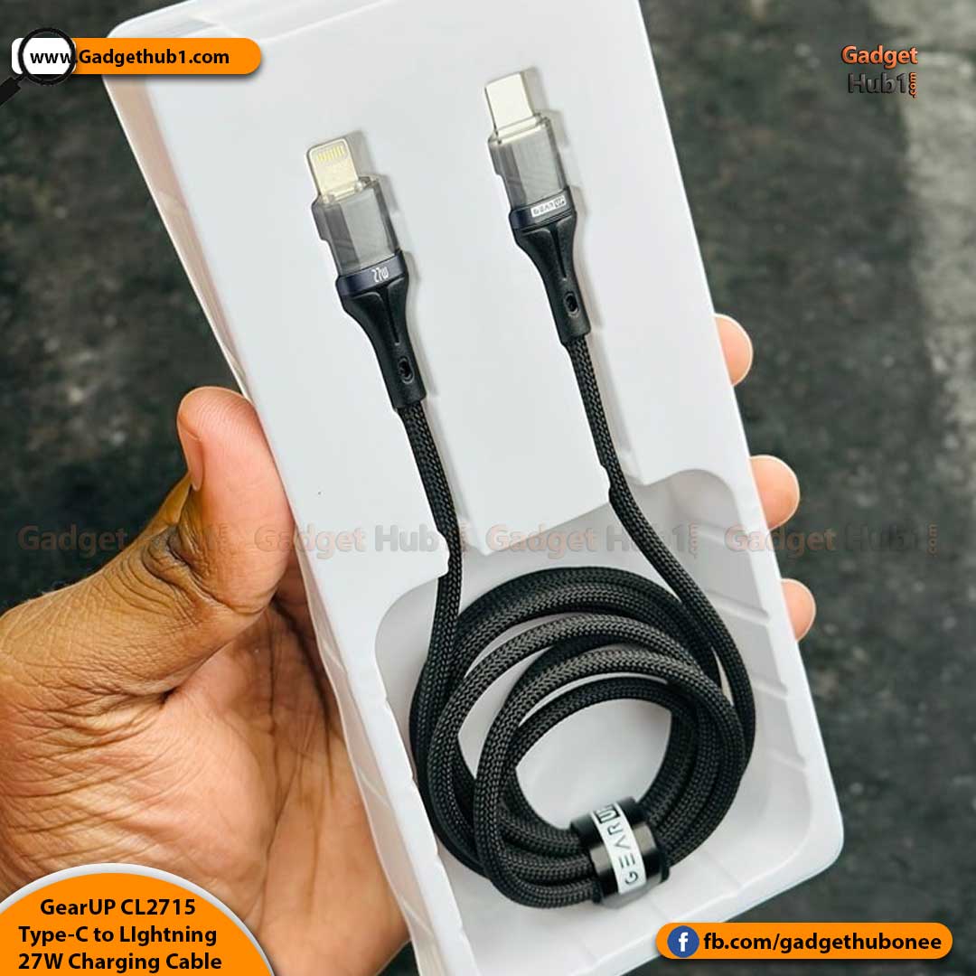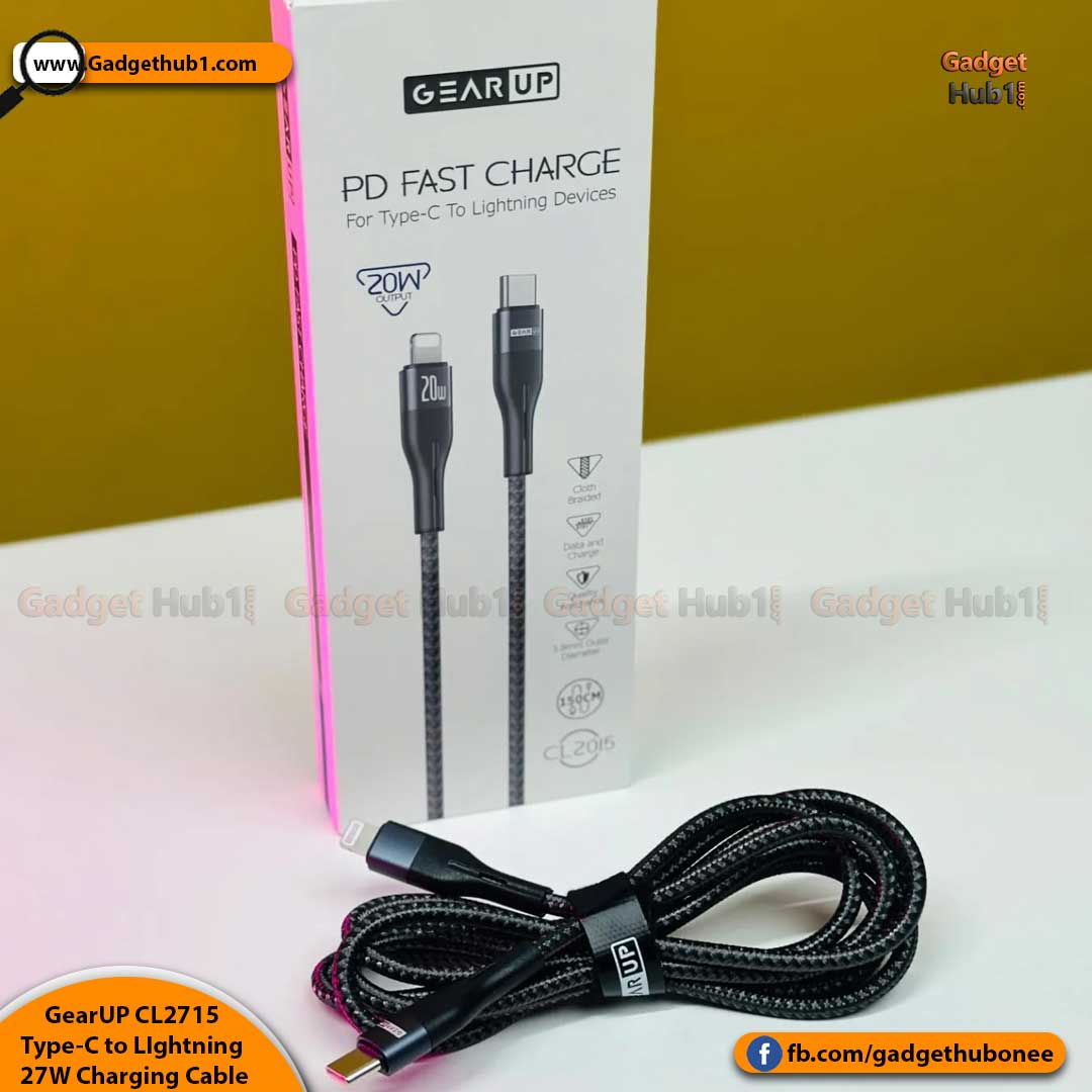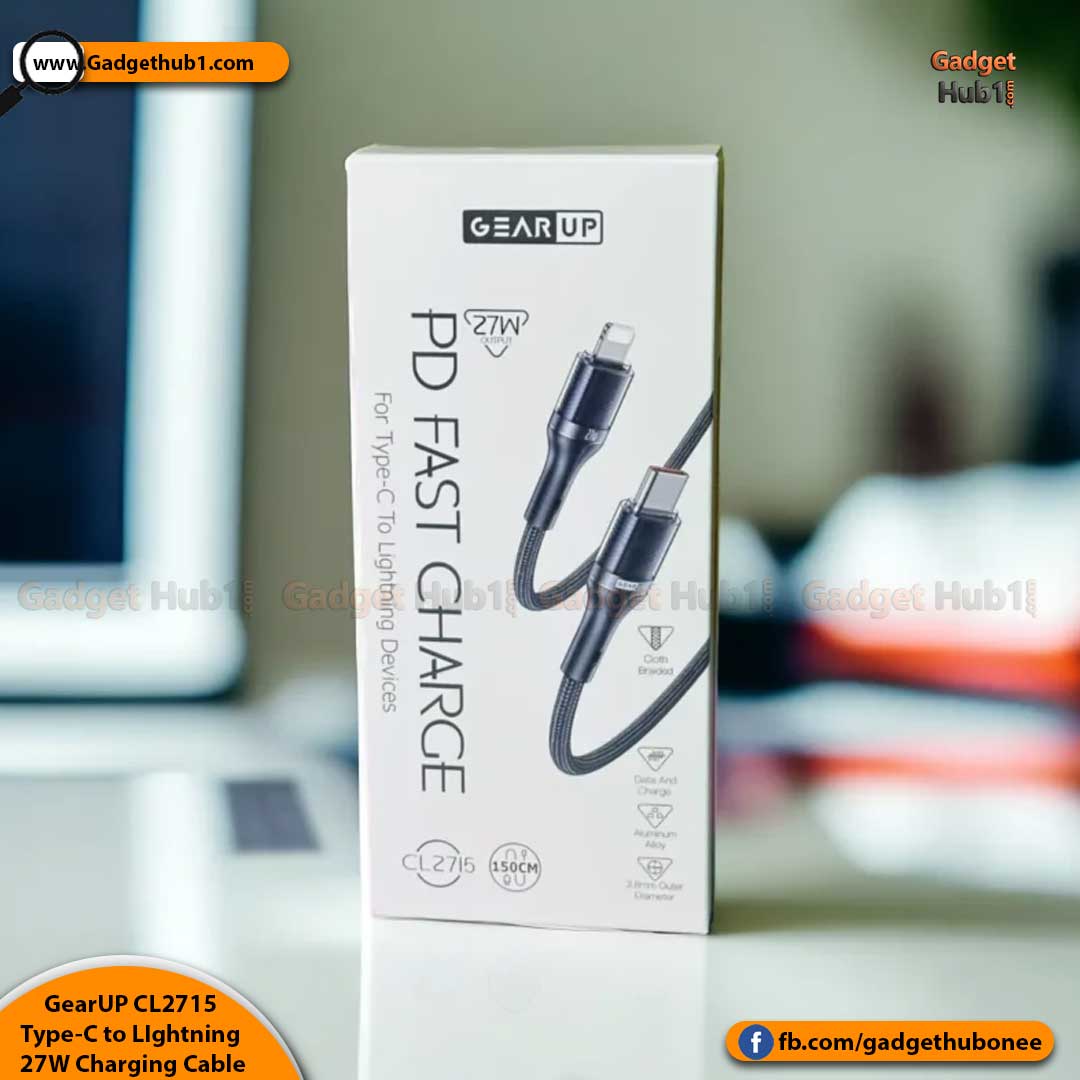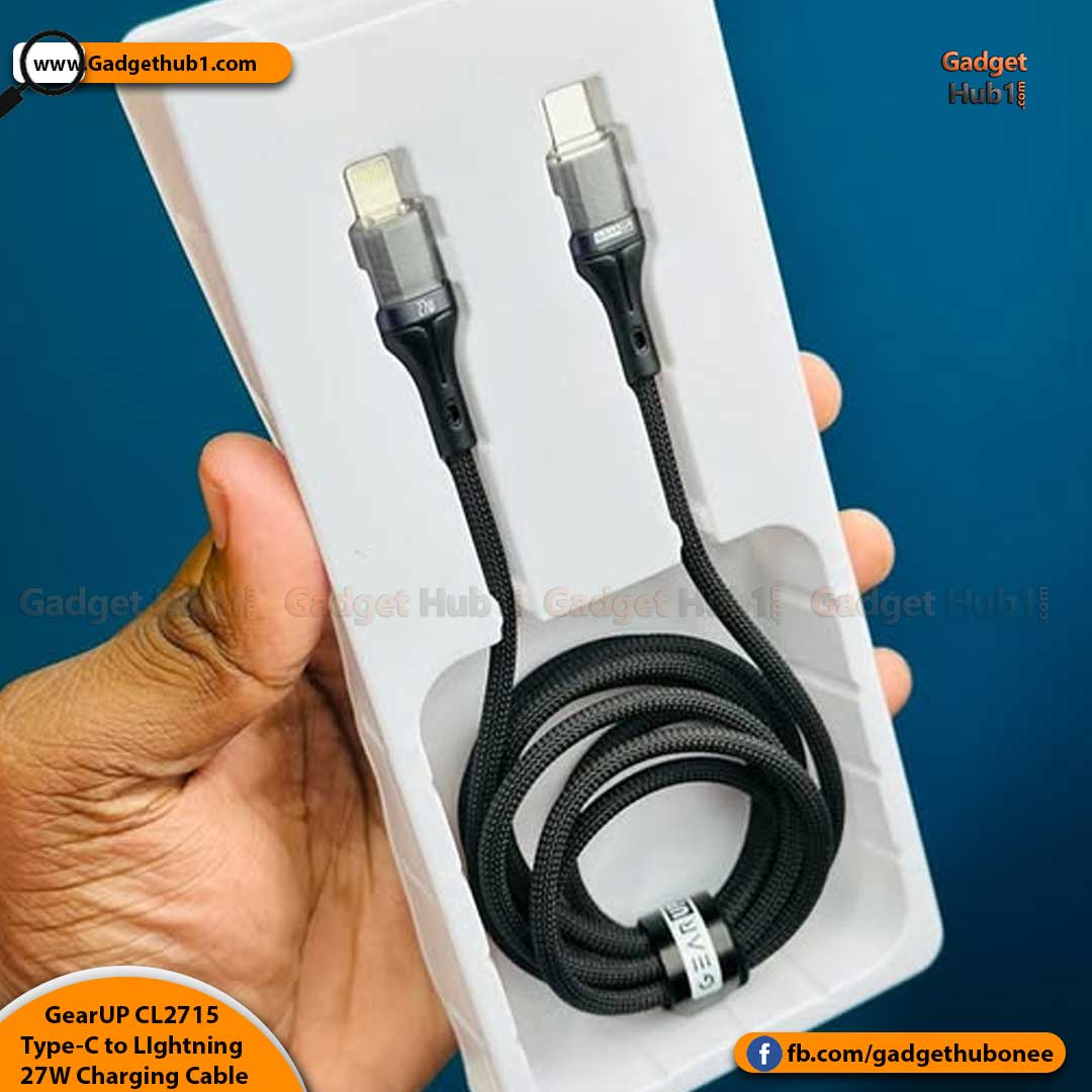 Are you looking for a Type-C to LIghtning 27W PD Fast Charging Cable & Data Cable in Bangladesh with home delivery? Then Gadget Hub One is a great place to buy the GearUP CL2715 Type-C to LIghtning 27W PD Fast Charging Cable & Data Cable From Barishal, Chattogram, Dhaka, Khulna, Rajshahi, Rangpur, Mymensingh, Sylhet, and all over Bangladesh and with Cash on Delivery. Online Shopping in Bangladesh for Genuine products, excellent customer support, easy returns, and speedy deliveries. Besides, there are many reasons why our customers keep returning to our Gadget Hub1. Be a part of our official Facebook page stay connected!